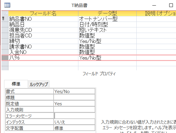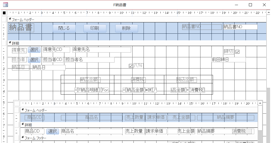 納品書に先ほどテーブルで作ったフィールドを追加します。