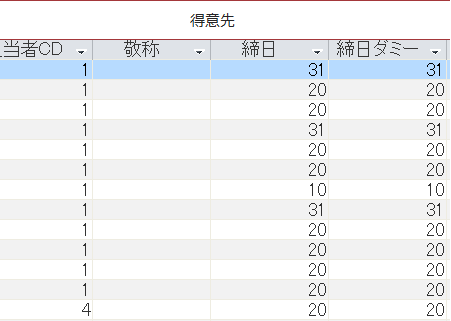 方法は得意先テーブルの締日を全て更新クエリで31日変更します。