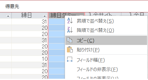 戻す方法は、ダミーの列全体をコピーして、締日の列を選択して貼り付けです。