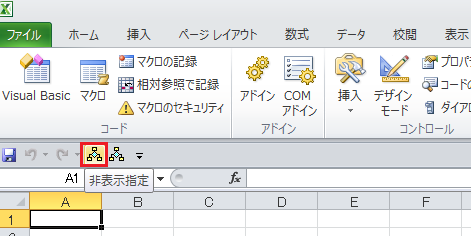 クイックアクセスツールバーに上記のように表示されます。