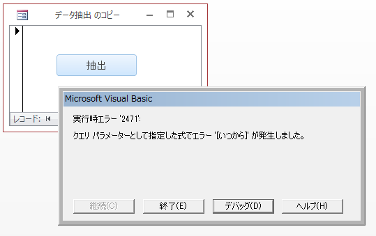 rs1!商品名 = DLookup(“商品名”, “売上集計期間指定“, “商品CD='” & rs!商品CD & “‘”)