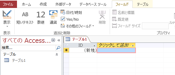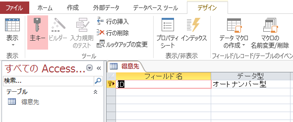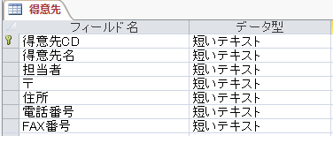 これでとりあえず「得意先」というテーブルができたので、これからフィールドを設定していきます。