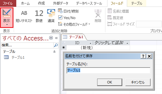 名前を付けて保存で、テーブル名を「得意先」として「OK」をクリックします。