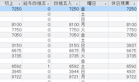 休日残業: Int(IIf([曜日]=”日”,[切上]*1.25,[切上]))