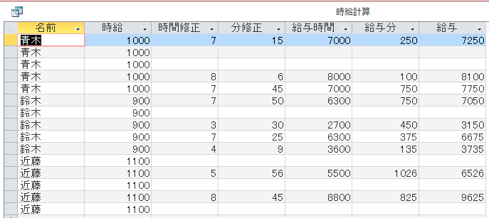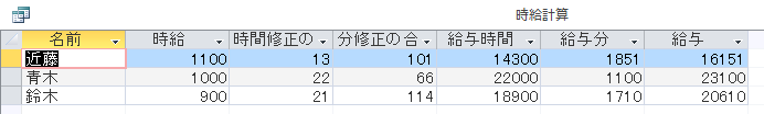 最初に社員テーブルに時給というフィールドを作り、そこに各人毎に時給を