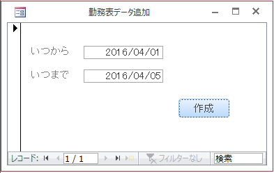 次に勤務表データ追加フォームのコマンドボタンのVBAコードを変更します。
