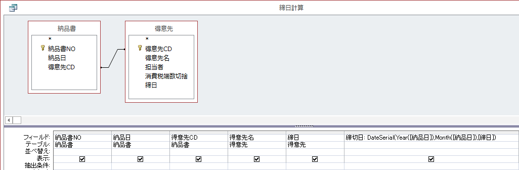 締切日: DateSerial(Year([納品日]),Month([納品日]),[締日])