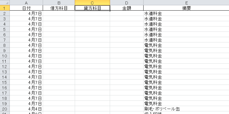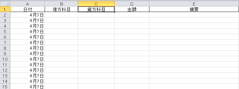 日付を仕訳データに変換していきます。
