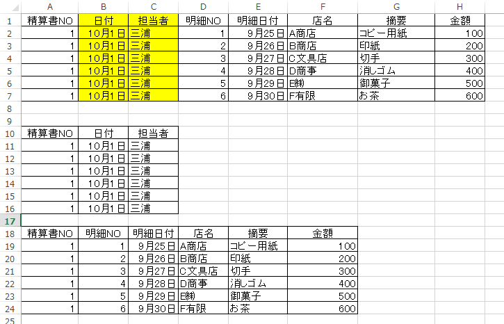一番左の精算書NOという同じフィールドがあります。このフィールドを元に二つのデータを関連付け