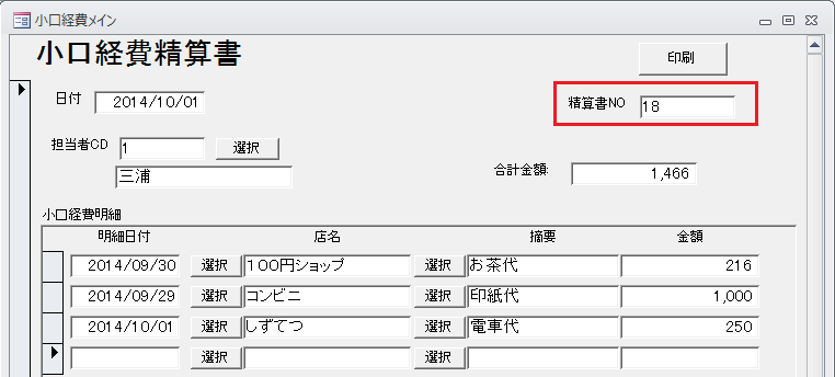 精算書NOが初期値として表示されます。