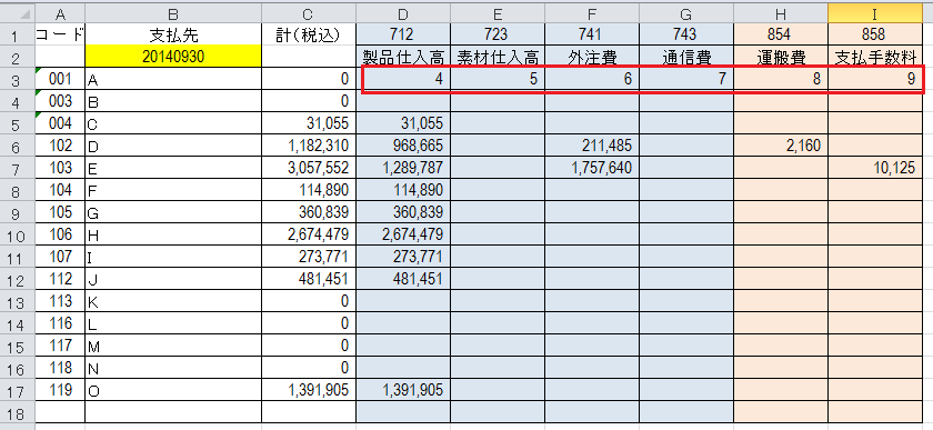 実行します。ですのでJ列は空白なので、そこでプログラムは止まります。