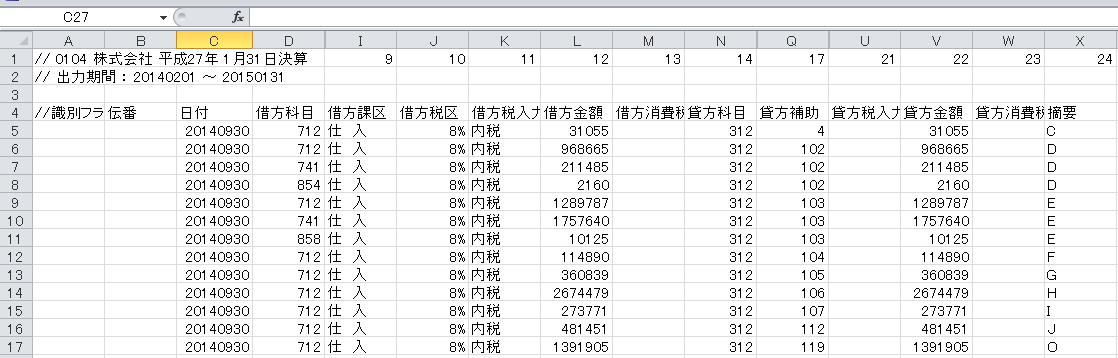 例えば、貸方科目CDは買掛金の312はどの行も同じです。