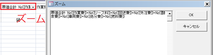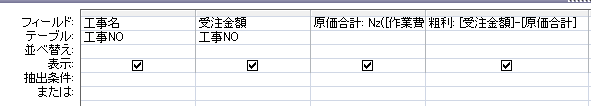 クエリのフィールドの設定をするときに、フィールドを作る箇所で数式を