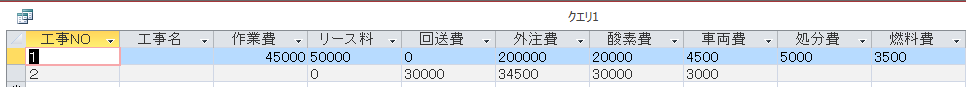 集計クエリでテーブル毎に工事NO毎に金額を集計して、そのクエリを更に工事NO