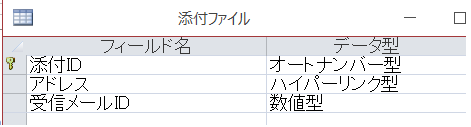 次に添付ファイルを保存するテーブルを作ります。