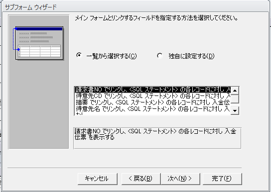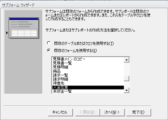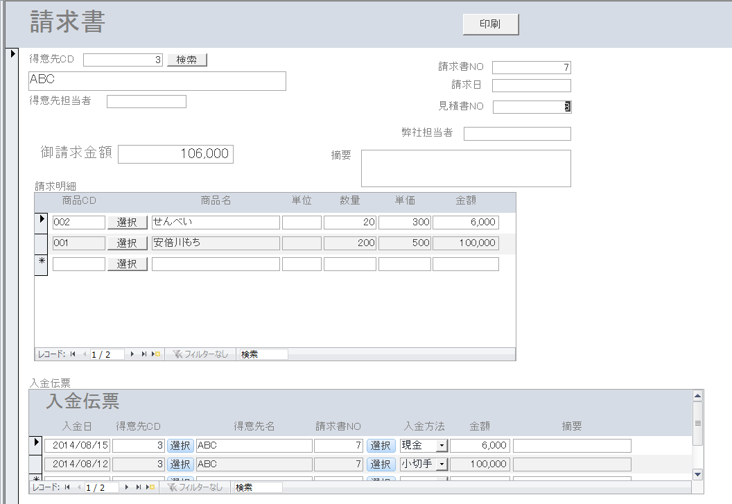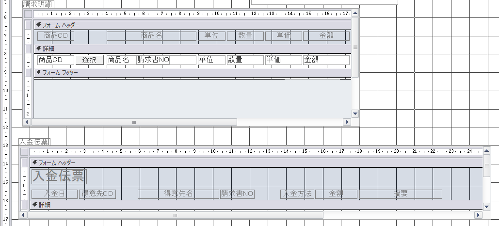 請求書フォームに入金伝票フォームをサブフォームとして貼り付けます。