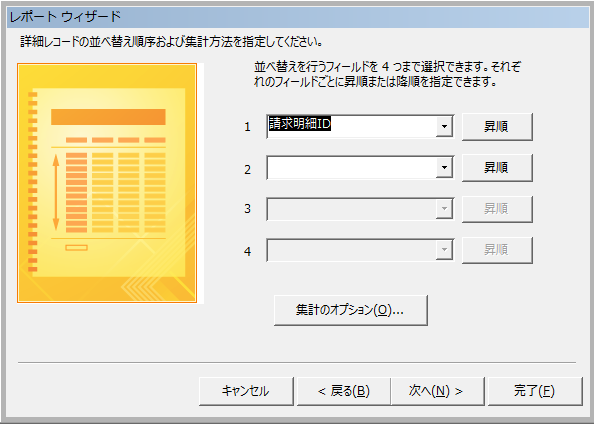 詳細レコードの並べ替えについては、請求明細IDを選択します。