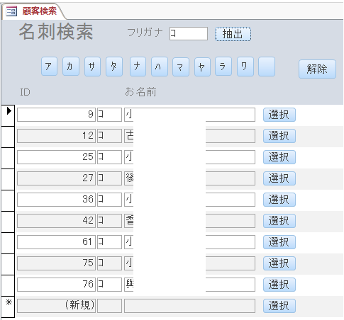 Accessで名刺管理~フリガナ検索②