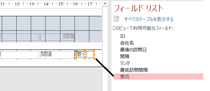 フィールドリストの中から要否を選択してしかる場所までドラッグします。
