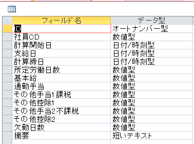 Accessで給与計算3~テーブルの作成②