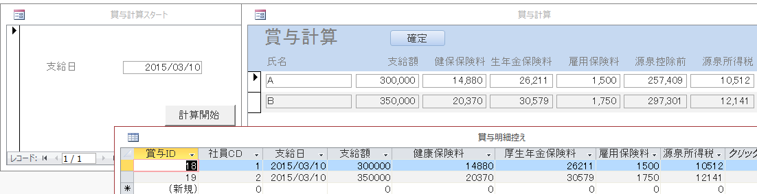 これで賞与計算クエリの計算結果を賞与計算控えテーブルに保存することができました。