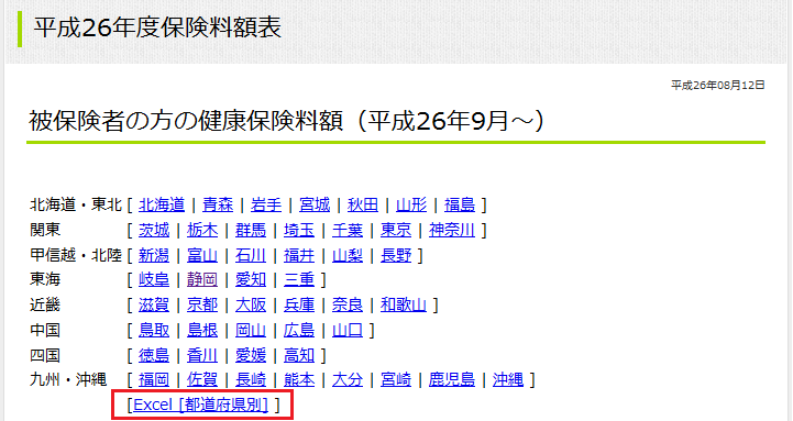 保険料額表のサイトを開き、Excelで料率表を開きます。
