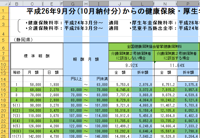 健康保険料率表に貼り付けます。
