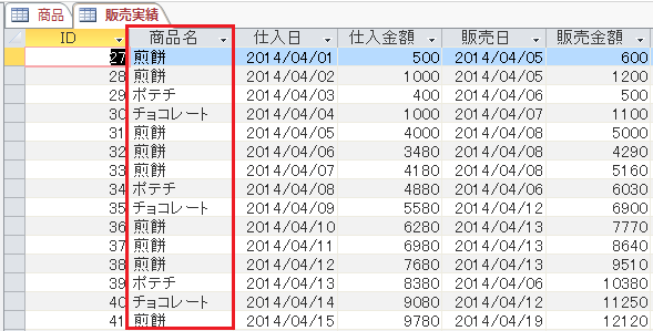 販売実績のテーブルには商品CDではなく、商品名で管理されています。