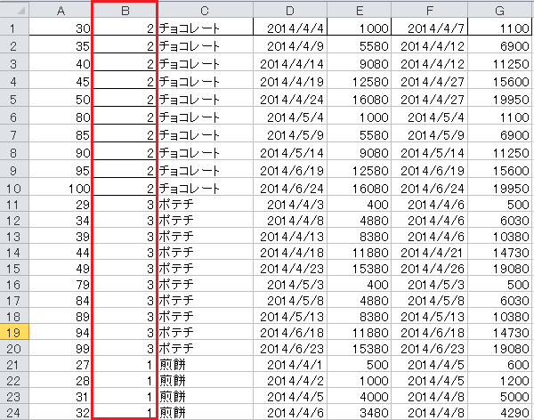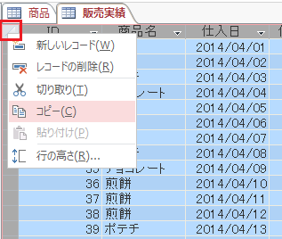 貼付後、商品名で並べ替えをして、商品テーブルに登録した商品名に対応する商品CDを