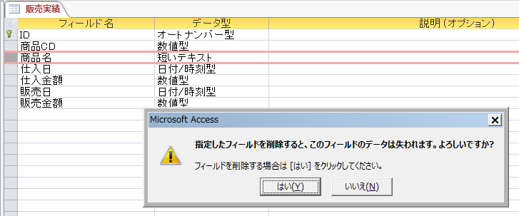 販売実績テーブルの商品名は不要なフィールドになります。