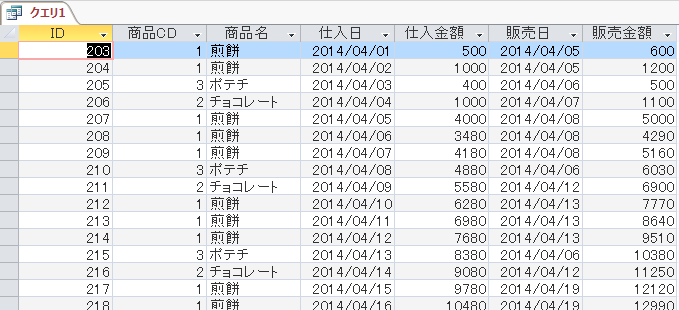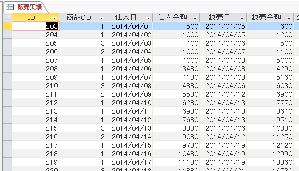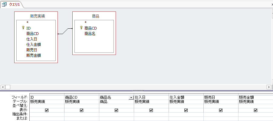 販売実績テーブルに商品CDを追加したので、商品名は商品テーブルから参照すればいいので