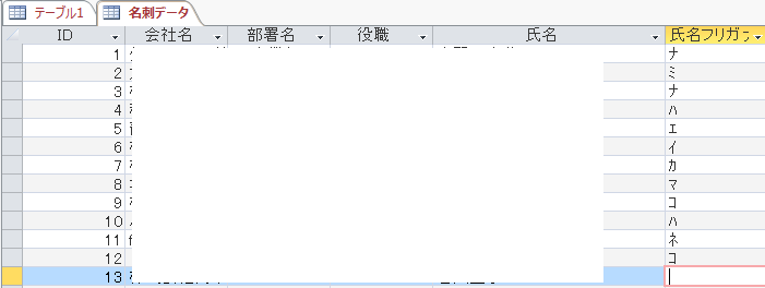 訂正が終わったら、次にフィールドを見てみると、フリガナがありません。