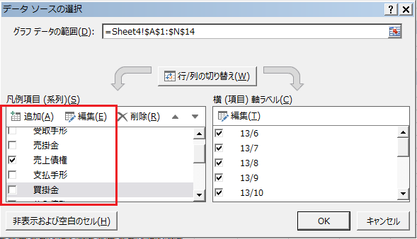 今回は集計科目だけグラフにするので、それ以外のデータのチェックを外します。