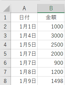 入力と仕方としては、まず日付と金額を入れます。