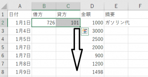 それ以外の項目、借方科目コード、貸方コードと摘要は同じなので、まとめて入力します。
